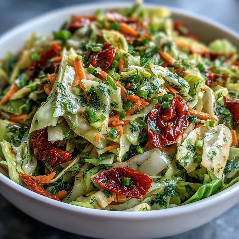 Summer or winter, this salad feels appropriate because the cabbage is always in season and sun-dried tomatoes bring a concentrated warmth that works against winter's chill just as well as they shine alongside fresh summer meals. There's no recipe anxiety with something this flexible—it works as a side dish alongside grilled fish, as a light lunch with a crusty bread, or even as a vegetarian main course if you add some seeds or nuts for protein.