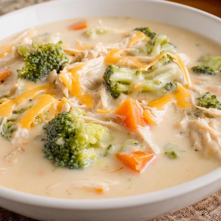 My cousin who worked in a restaurant kitchen taught me to blend just half the soup before adding the cheese and chicken. It creates this incredible body and creaminess without needing heavy cream, and you still get those satisfying chunks of broccoli and chicken in every spoonful.