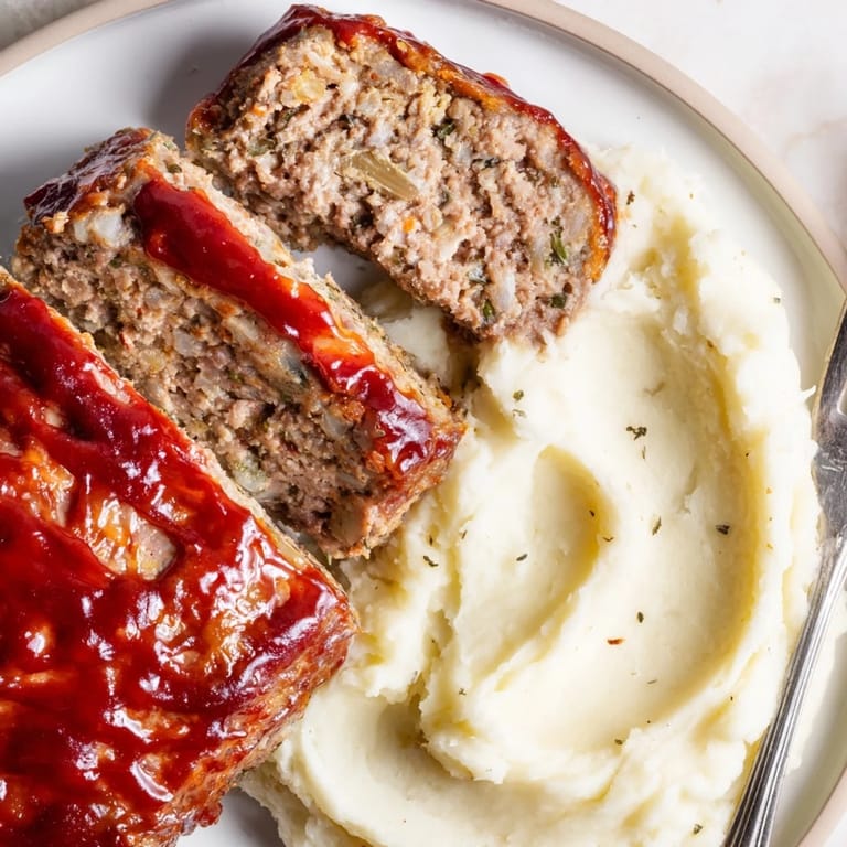 Save A comforting, homestyle dish featuring juicy, flavorful meatloaf paired with creamy, buttery mashed potatoes. The perfect family dinner for any night of the week.