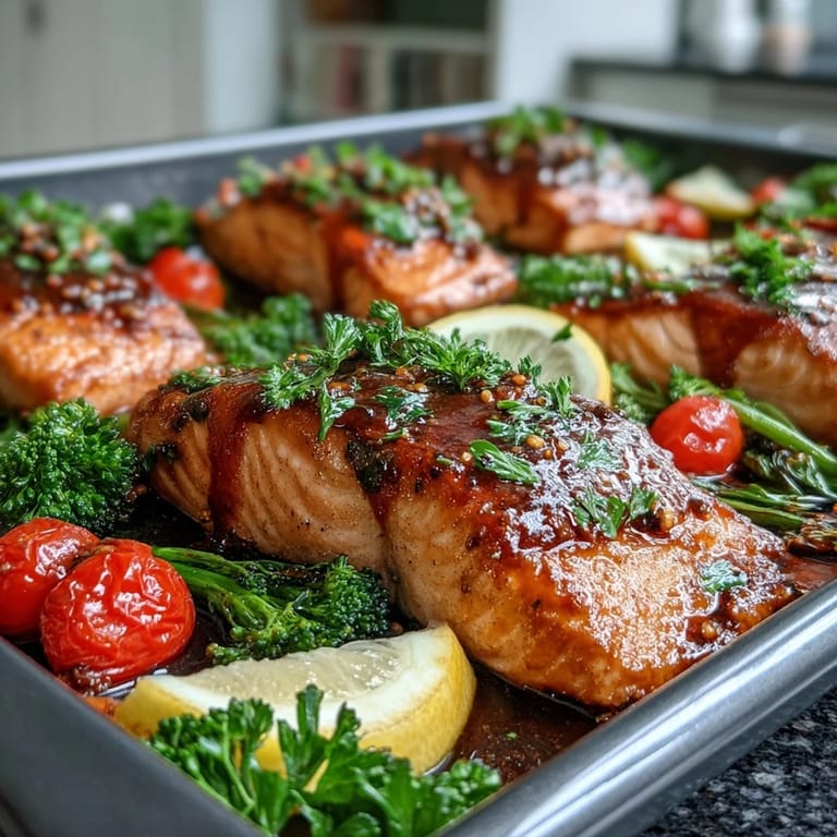 Save There's something almost magical about pulling a sheet pan from the oven and finding perfectly roasted salmon nestled among caramelized vegetables, all bronzed and glistening. My first attempt at this dinner came on a Wednesday when I had exactly 40 minutes and absolutely no energy for fussing, so I threw everything onto one pan with a quick Dijon glaze and hoped for the best. The kitchen smelled incredible halfway through, and when I sliced into that first fillet, it was flaky perfection—tender enough that it practically melted. Since then, this has become my go-to when I want to feel like I've made something special without the stress of juggling multiple pots and pans.