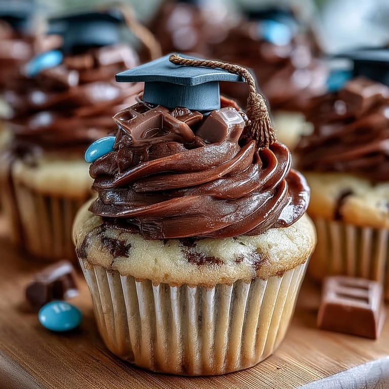 Present these graduation cupcakes on a tiered cupcake stand for an impressive display at your celebration. Arrange them on a decorative platter surrounded by school colors, confetti, or small graduation-themed decorations like mini diplomas or star cutouts. For an extra special touch, create personalized cupcake toppers with the graduate's name or graduation year using edible markers on fondant circles placed beside the caps. These cupcakes pair beautifully with champagne, sparkling cider, or coffee at adult gatherings, and with milk or fruit punch at family-friendly events. Store any leftovers in an airtight container at room temperature for up to 2 days, though they're best enjoyed the day they're assembled to keep the frosting fresh and the caps secure.
