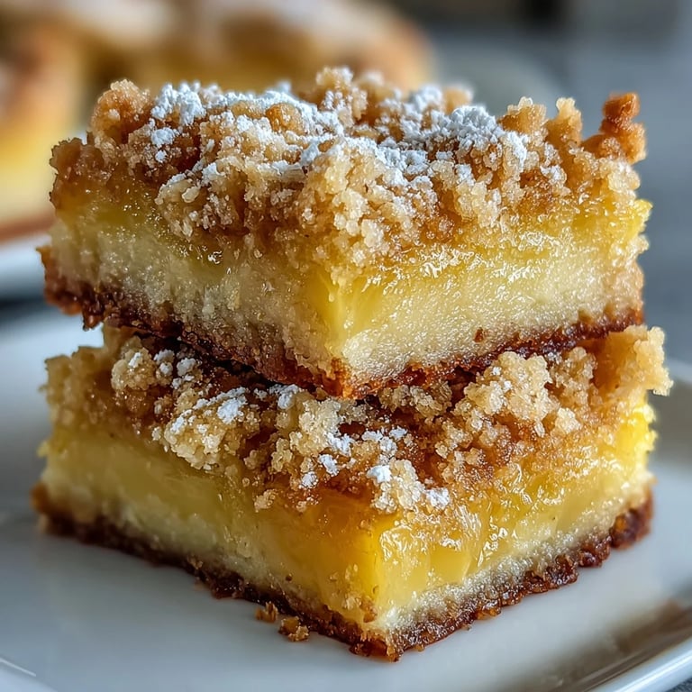 Save The kitchen smelled like sunshine the first time I made these lemon crumb bars, that bright citrus scent wrapping around everything until my roommate wandered in asking what bakery had opened in our apartment. I'd been craving something tart and sweet after dinner, and these buttery, tender squares with their golden crumb topping felt like discovering a hidden treasure in an old cookbook.