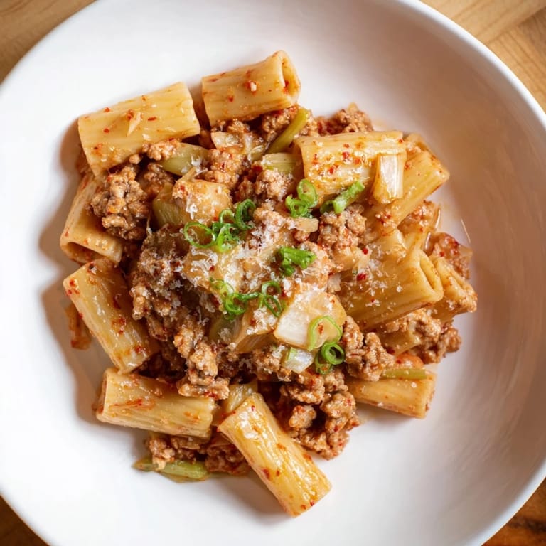 Save One rainy Tuesday, I stood in my kitchen staring at a jar of kimchi that was getting past its prime and a half-empty can of crushed tomatoes, wondering if I could somehow make them stop judging me from the pantry. What came out was equal parts accident and genius: a ragu that tasted like my Italian grandmother had a secret love affair with Seoul. The first time I tasted it, I actually laughed—spicy, creamy, umami-loaded pasta that made no sense on paper but everything on the palate.