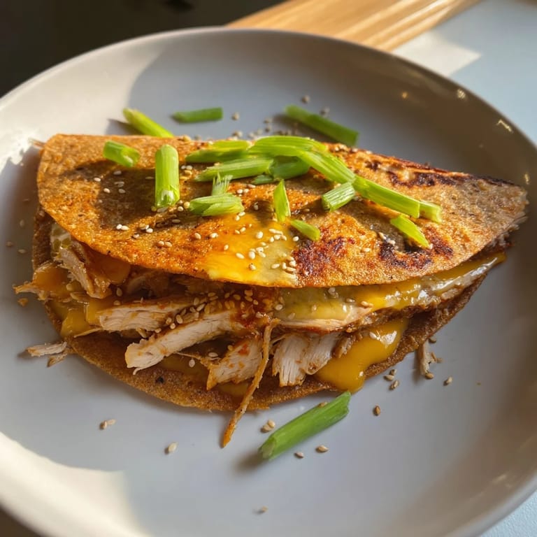 Save My friend Sarah showed up one Thursday evening with leftover Korean BBQ chicken and a wild idea: what if we turned it into something crispy and melty? Twenty minutes later, we had these golden, cheese-stuffed wraps that tasted like someone had finally figured out what fusion food should actually be. The way the sesame oil hit the butter-grilled surface, the mozzarella pooling at the edges, the scallions snapping between your teeth—it felt like we'd accidentally invented something that should've existed all along.