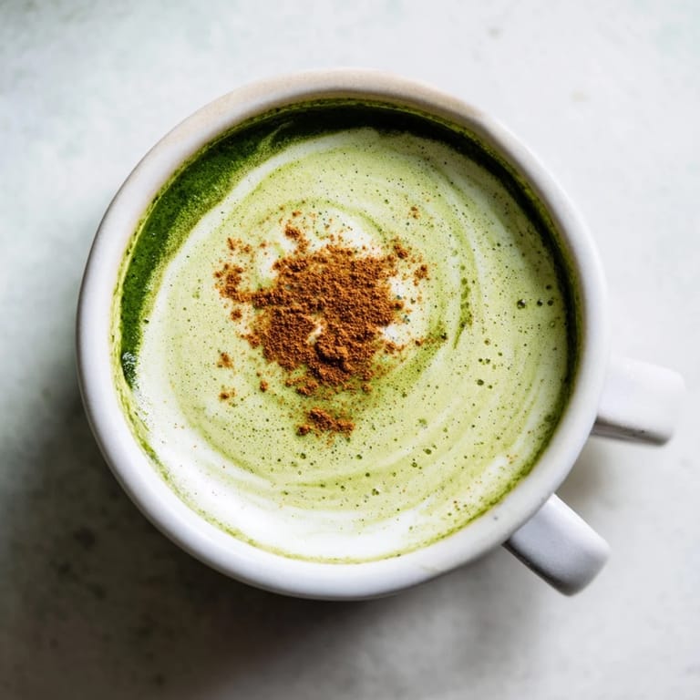 Save A cozy, aromatic latte combining creamy oat milk, earthy matcha, and festive gingerbread spices, lightly sweetened with maple syrup.
