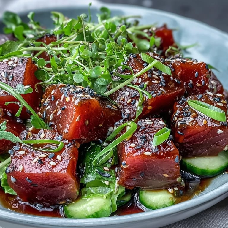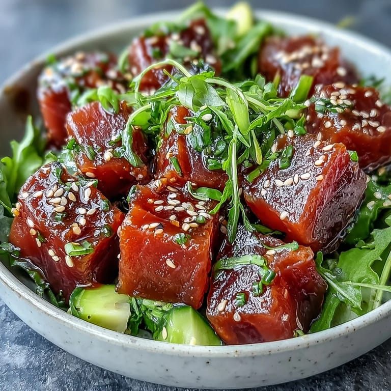 Save There was something about the first taste of ponzu that made me pause mid-bite—the way its citrusy tang brightened up the tender pieces of tuna in a bowl that almost shimmered with spring colors. I’m not the methodical meal prepper in the family, but this poke bowl won me over for how playfully quick it comes together, each layer inviting a little improvisation. The kitchen fills with the freshness of just-sliced cucumber and the low hum of conversation as someone inevitably asks if there’s extra avocado. Even with the steps laid out, it’s an adventure of textures and flavors—crisp, creamy, cool, and savory. For those days when you want all the taste of a restaurant poke bowl but none of the hassle, this recipe is like a breezy afternoon in a bowl.