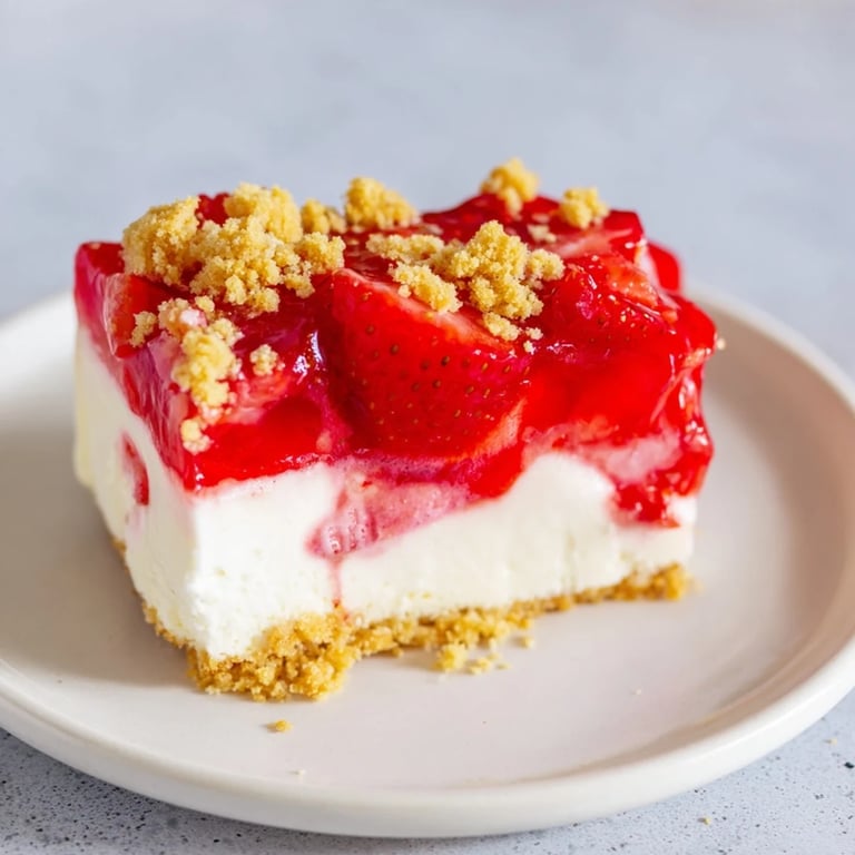 Enjoy this decadent dessert chilled, and savor each layer of strawberry goodness.
