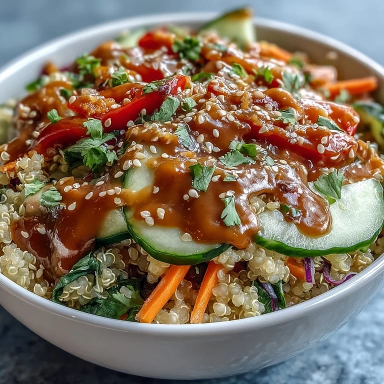 This bowl is incredibly forgiving and welcomes whatever you have on hand. I have added roasted sweet potato, grilled tofu, shredded rotisserie chicken, and even leftover roasted broccoli. Once, I used almond butter instead of peanut butter in the dressing, and it was just as good. The base stays the same, but the toppings can change with the seasons or your mood.