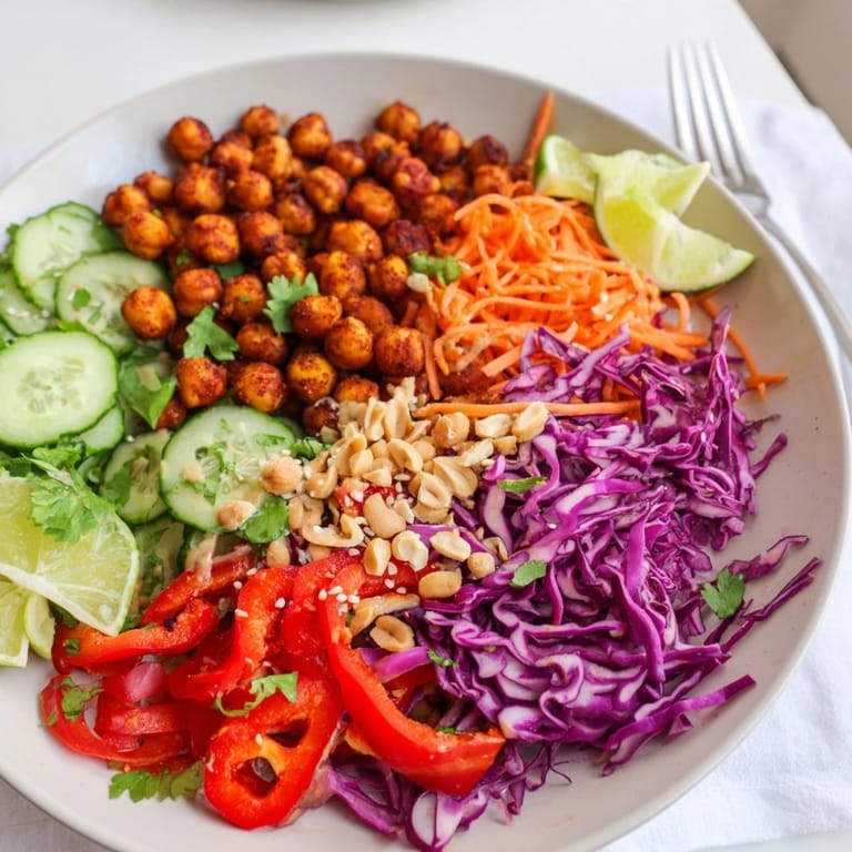 Save This vibrant Thai Peanut Toasted Chickpea Salad is my go-to when I am craving something crunchy, fresh, and full of flavor but want a meal that actually satisfies. The combination of oven-roasted chickpeas, colorful crisp vegetables, and that silky-creamy peanut dressing always makes me excited to dig in. It is perfect as a light lunch or a standout side that always gets compliments at potlucks.