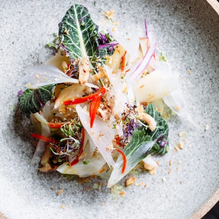 Save I discovered this dish on a gray afternoon when I was staring at my vegetable drawer, overwhelmed by the pale winter roots that seemed to mock my indecision. Then something clicked—the idea of arranging them not as food, but as a landscape, scattered and deliberate like frost patterns on glass. The first time I plated it on a cold stone, I realized I wasn't just making a salad; I was creating a moment of stillness on the plate.