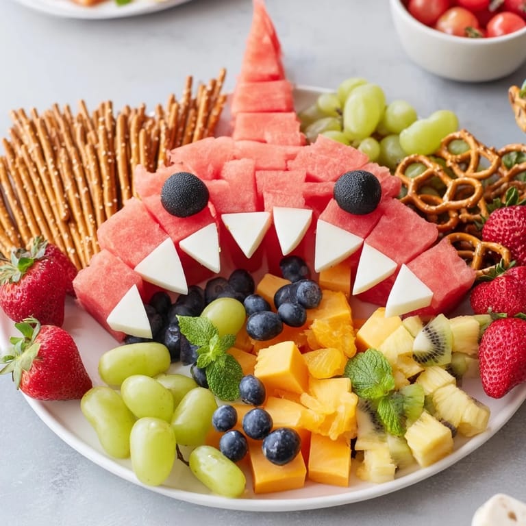 This snack board works wonderfully as a centerpiece at summer parties, picnics, or kids’ birthday celebrations. Serve with chilled beverages and watch as guests dive into the fresh, juicy fruits and crunchy treats spilling from the cheerful watermelon shark.