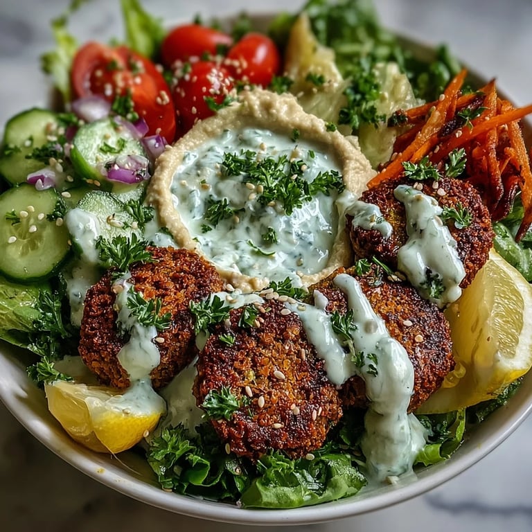 Save My neighbor Dina taught me to build bowls instead of recipes. She'd stand at her counter with containers of dips, vegetables, and herbs scattered everywhere, never measuring, always tasting. One afternoon she handed me a spoon loaded with hummus, falafel, and cucumber in one bite and said, this is how you eat color. I started making these bowls the next week and haven't stopped since.
