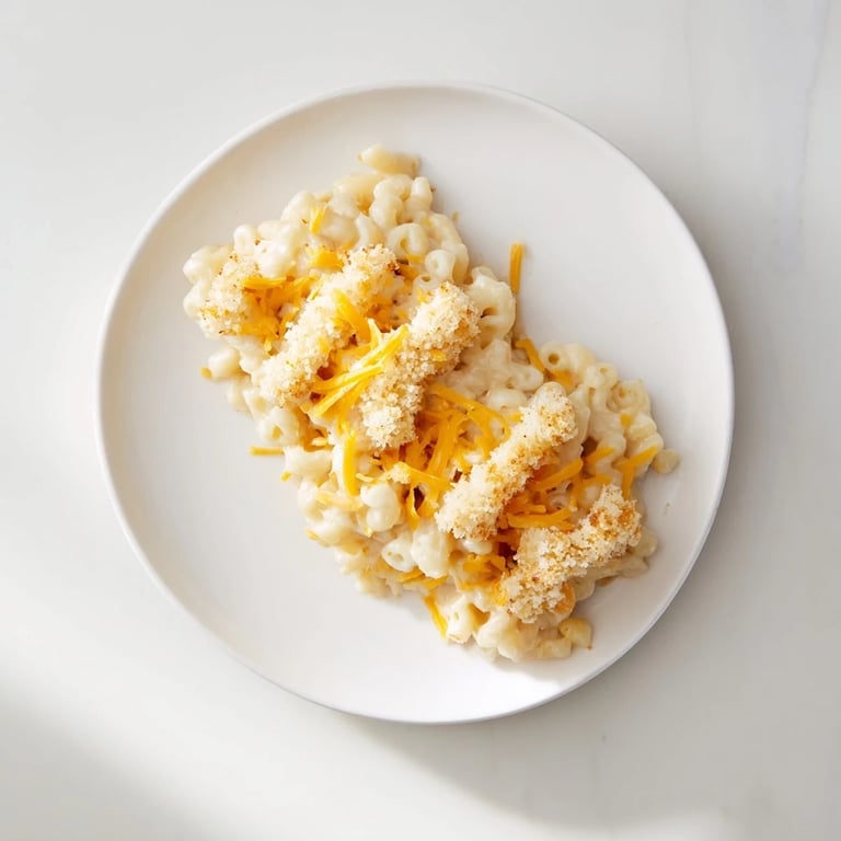 Save A creamy, nostalgic classic featuring tender elbow macaroni baked in a rich, cheesy sauce with a golden breadcrumb topping. Perfect for family dinners or gatherings.
